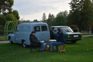 Septembervädret visade sej från sin bästa sida ikväll, soligt och svaga vindar, även om temperaturen var åt det kyligare hållet. Fordon rullade in från närområdet, men också från närliggande kommuner - både kända ansikten och nya bekantskaper. Dryga fyrtiotalet två- och fyrhjuliga fordon, med förare och passagerare, samlades denna sista kvällen med gänget, dukade upp medhavda fikakorgar, surrade, umgicks och hade det allmänt gemytligt, även om höstkylan började kännas i slutet på kvällen. Denna kväll sätter punkt för sommarens motorträffar. Vi ser tillbaks på en kanonsommar, med många magiskt vackra kvällar i parken (okej, nån liten regnskur kom väl också). Vi haft rekordmånga fordon på besök, från när och fjärran, och gjort många nya bekantskaper både vad gäller fordon och människor. Ett stort tack till alla motorvänner som kommit till parken och visat era pärlor. Ett lika stort tack till alla ni utan fordon som har besökt oss och pratat motor, och till gänget på Tommys kök och catering mättat våra hungriga magar. Tillsammans har vi skapat magiska motorkvällar med vackra, intressanta fordon, underbara människor (med och utan fordon), gemytlig stämning och mycket surr. Ett speciellt tack också till järngänget (Tore, Anneli, Greger, Ingmarie, Stanley, Ingalill, Peter, Ewa m.fl) som får allt att hända. Vi ses igen nästa sommar i parken – jag längtar redan!