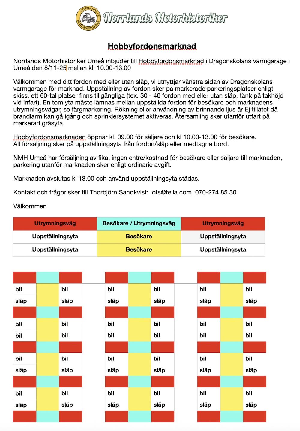Norrlands Motorhistoriker Umeå inbjuder till Hobbyfordonsmarknad i Dragonskolans varmgarage i Umeå den 8/11-25 mellan kl. 10.00-13.00
