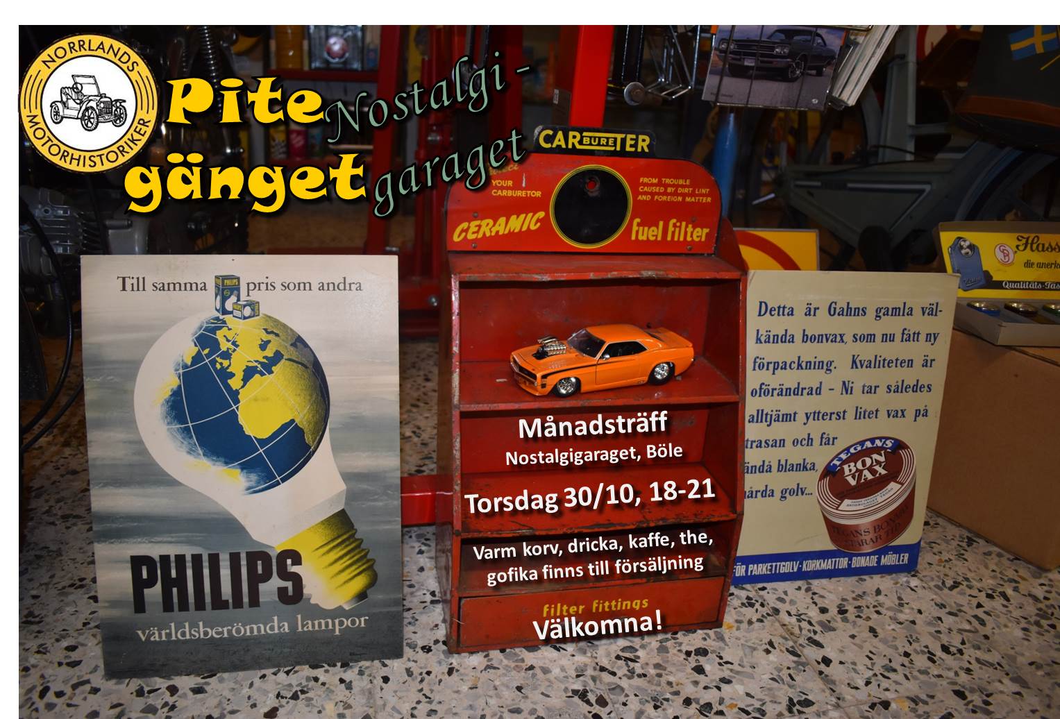 Torsdag 30/10 18-21 i Nostalgigaraget, Böle (Vilhelmsvägen 1)