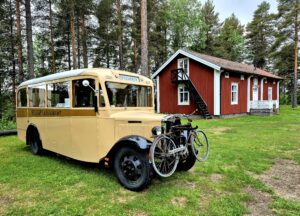 Det blev en mulen och småregnig kväll, få kom i sina gamla fordon men ändå många som fikade och åt. Tur att det finns gott om plats att sitta inne om inte vädret är på vår sida.