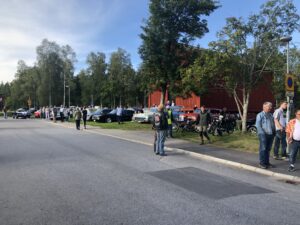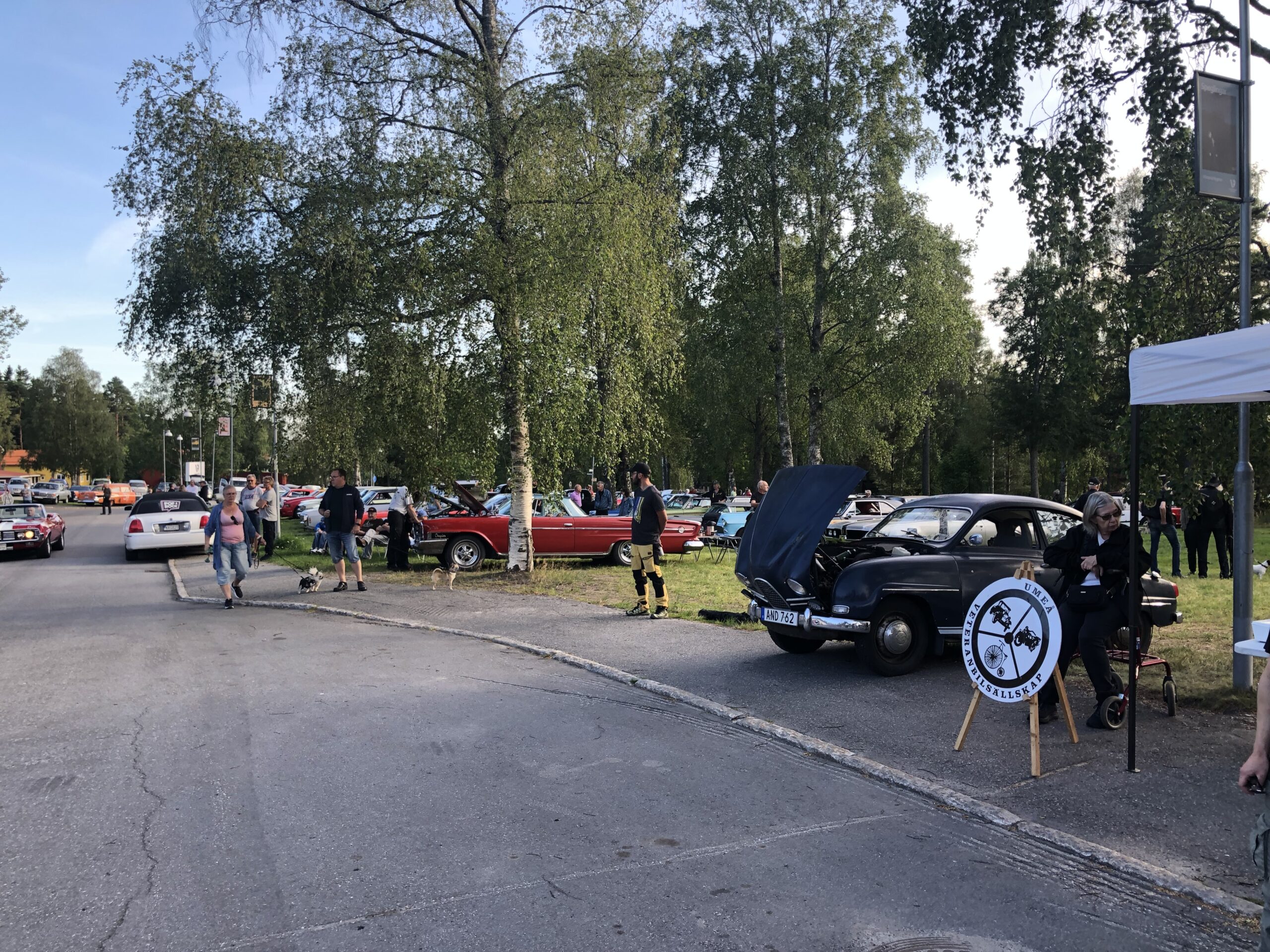 Ett mycket välfyllt Gammlia denna ljumma sommarkväll, det var så att säga fullbelagt med fordon och en mycket glad stämning. Vi hade ett informationstält som blev välbesökt där vi bland annat visade upp en Monark från 1928 och informerade om våra aktiviteter.