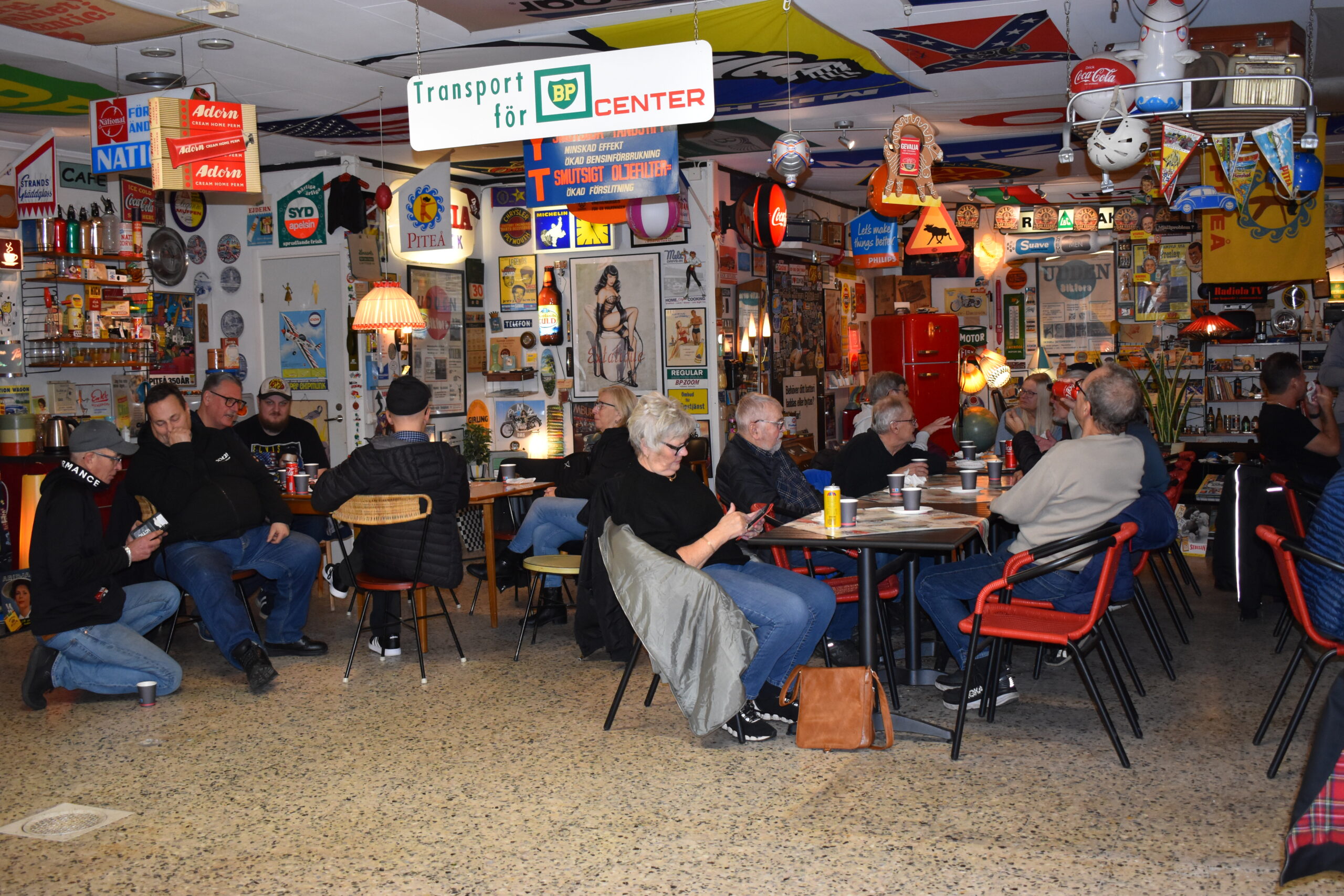 Det har varit en lååång, mörk, blöt Oktober, men nu var det äntligen dags för månadsträff I garaget igen. Ett sjuttiotal motorvänner hittade till garaget ikväll, trots mörker och blöta vägar - det gamla vanliga gänget naturligtvis, men vi fick också göra några nya bekantskaper. Kul att ni hittar till oss! Det kändes som om det var länge sen vi sågs så alla hade mycket att surra om och skratta åt. Nu är snart November här, och vi börjar planera för julaktiviteterna. Den 11/12 blir det som vanligt (H)julfest i garaget, med glöggmingel, "tomtegröt" och skinkmackor, och naturligtvis vårt sedvanliga julbakslotteri - börja redan nu att fundera på om ni är lediga den kvällen, och om ni vill, kan och har lust arr bidra med julbak till lotteriet. Närmare information kommer inom kort, både på Facebook-sidan och NMHs hemsida, där vi också tar emot anmälningar. I alla händelser ses vi igen nästa månad, samma tid, samma plats.