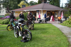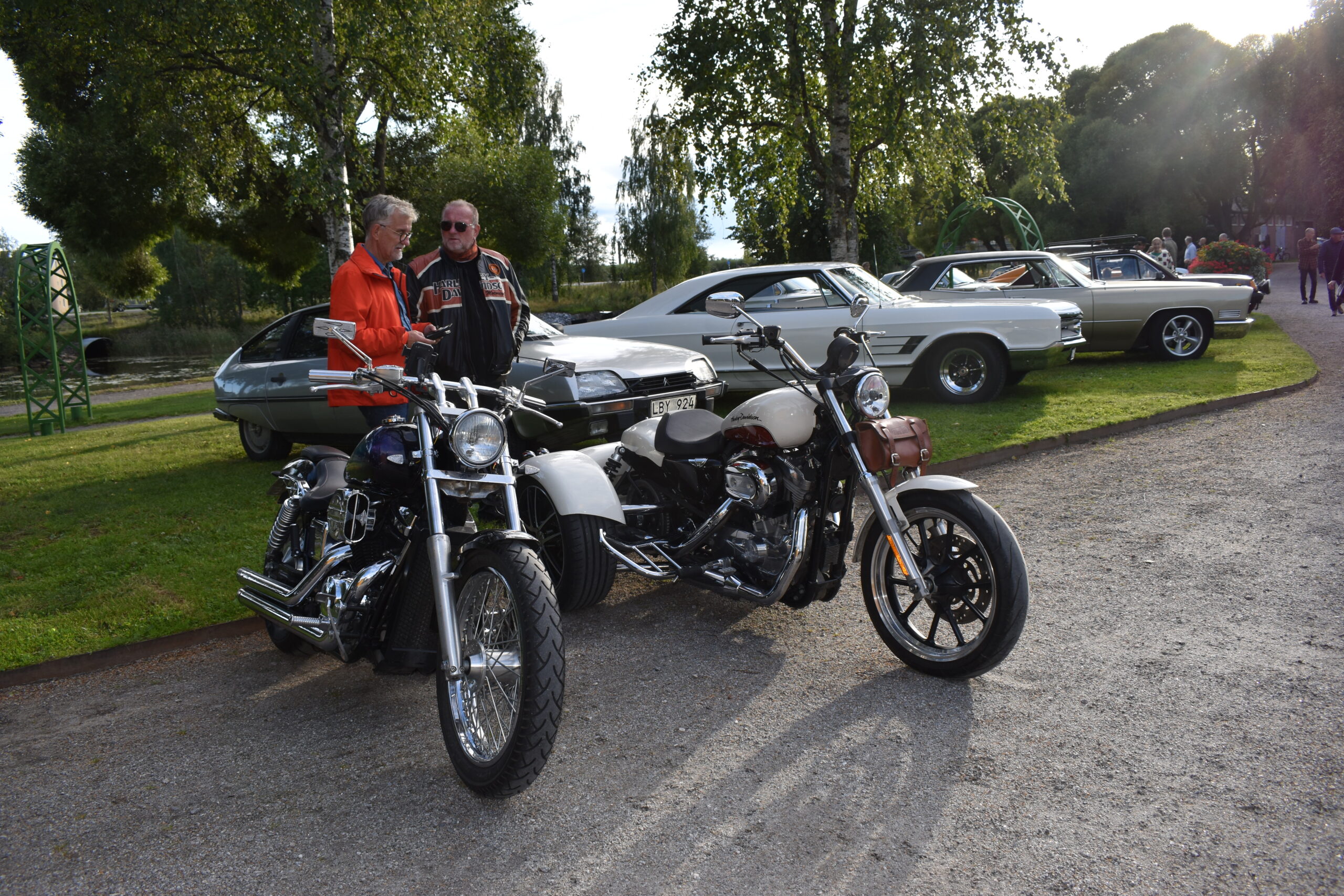 Kvällen blev solig och fin, men det kändes lite höstkyla i vindarna som drog över parken ikväll. Redan vid femsnåret började fordonen samlas, och slutligen stod nära hundratalet fordon uppställda i grönskan. Återigen fick vi träffa nya motorvänner och se på fordon som vi inte sett tidigare. Ett stort antal besökare kom också till fots för att titta på våra pärlor och surra med oss en stund. Fiket hade fullt upp även denna kväll - som var den sista kvällen de har öppet för denna sommar. Vi säger STORT TACK till Tommy med team för god mat, gott fika, god service och trevlig gemenskap - Vi hoppas att ni kommer igen nästa sommar! Vi andra håller ut ännu nån vecka så vi ses igen nästa Torsdag, samma tid, samma plats.