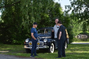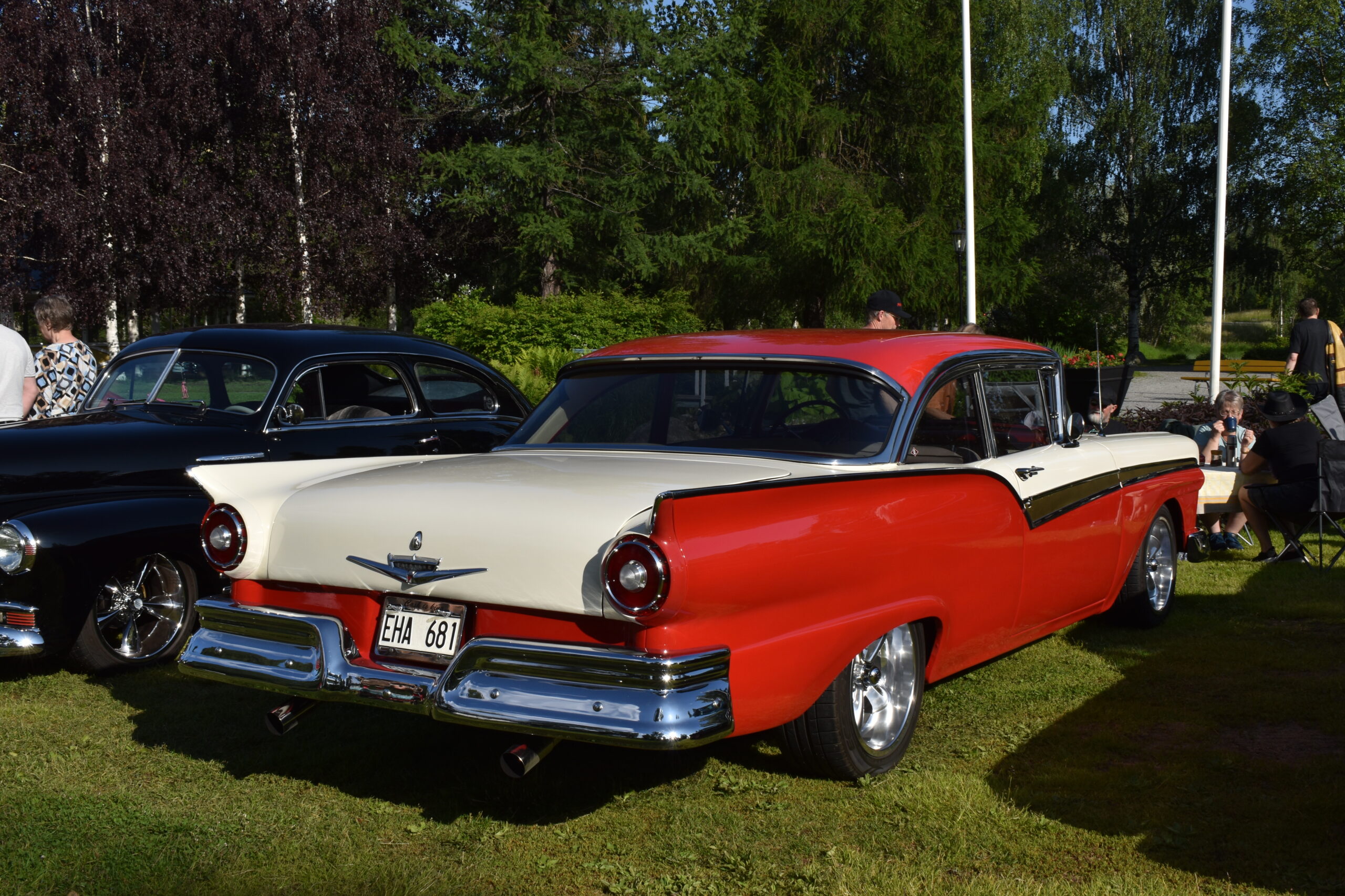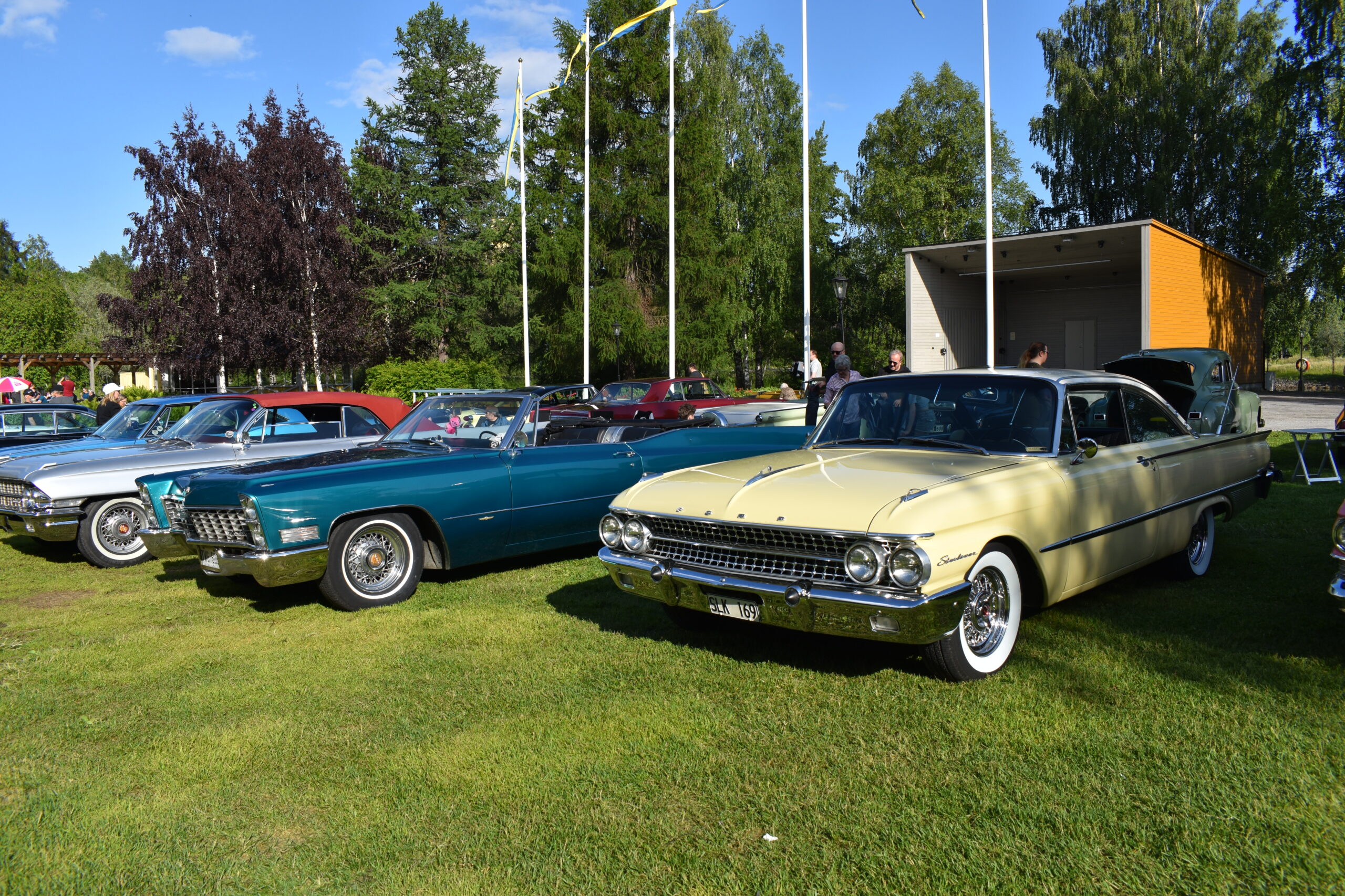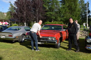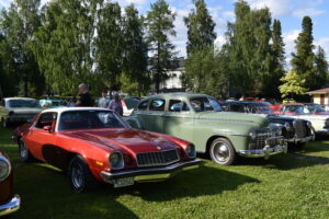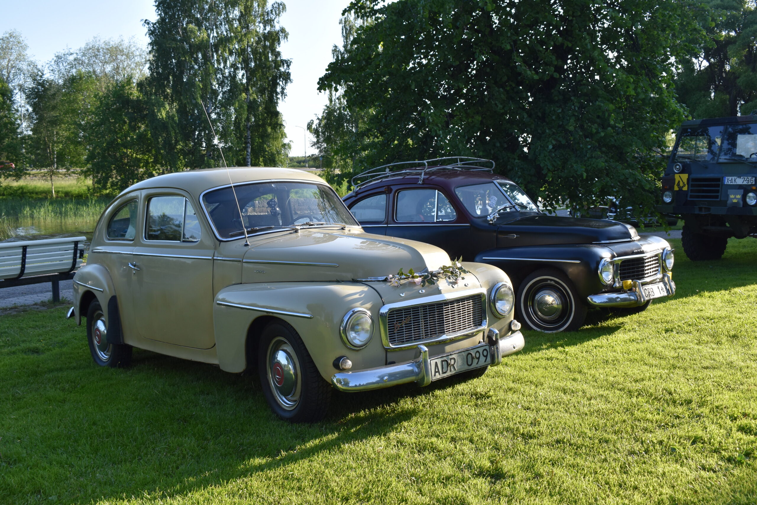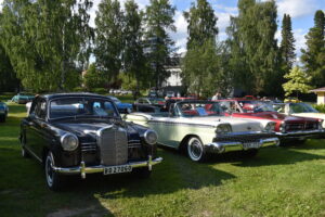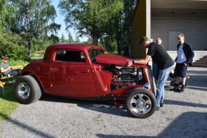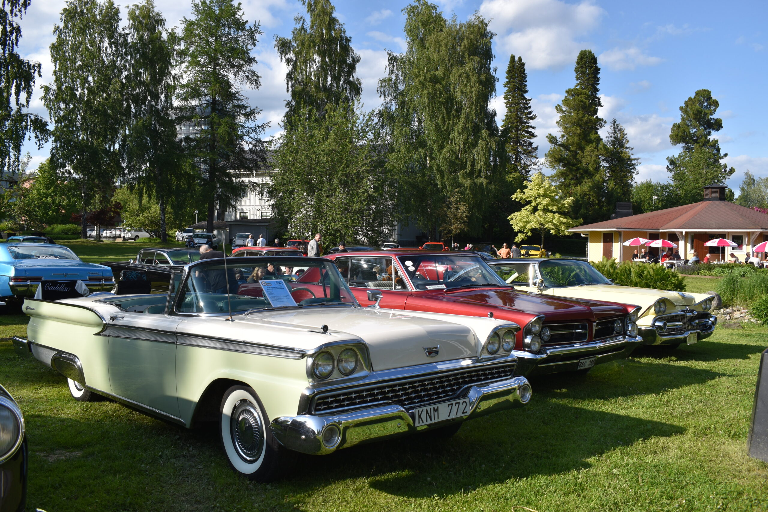 Vilken kväll! En mycket efterlängtad sol lyste från en nästan klarblå himmel och lockade fram bilfolk från när och fjärran. Redan halv fem började bilarna rulla in i parken och parkera i grönskan, och till slut stod hela 145 två, tre och fyrhjuliga fordon och glänste i solskenet. Lite trångt på vissa ställen, men finns det hjärterum så... Alla var på plats idag, gamla motorvänner, nygamla motorvänner och även idag några nya motorvänner. Det var också fullt med glada människor som kom till fots för att titta på fordon och prata motor med oss. Caféet var välbesökt, många passade på att fika pch äta från det rikhaltiga sortimentet. Sen satt vi länge med våra kaffekoppar och njöt av solen och det trevliga sällskapet. Nu får vi hoppas att det vackra sommarvädret håller i sej så ses vi igen nästa Torsdag - samma tid, samma plats.