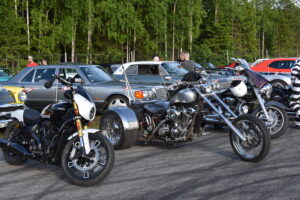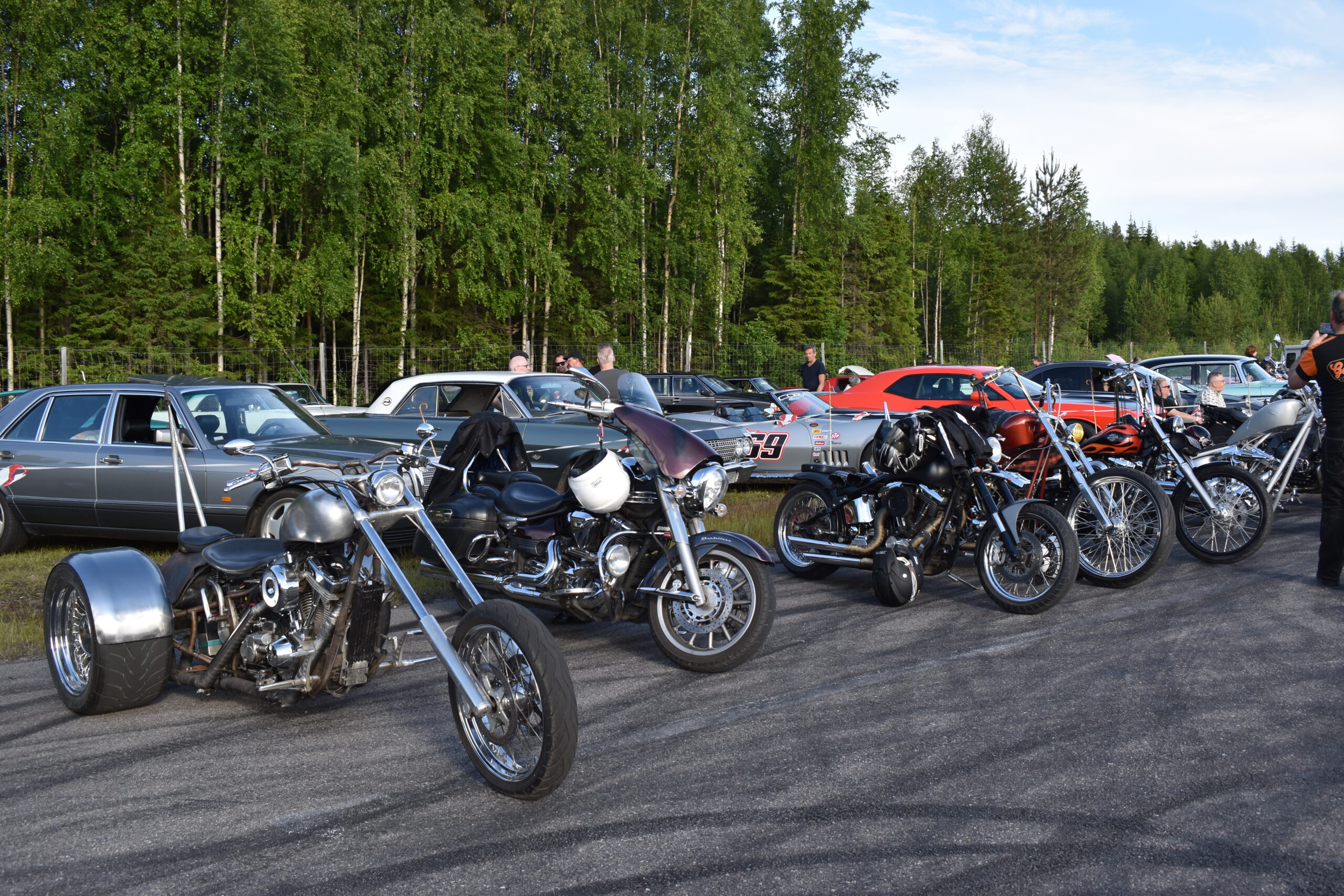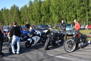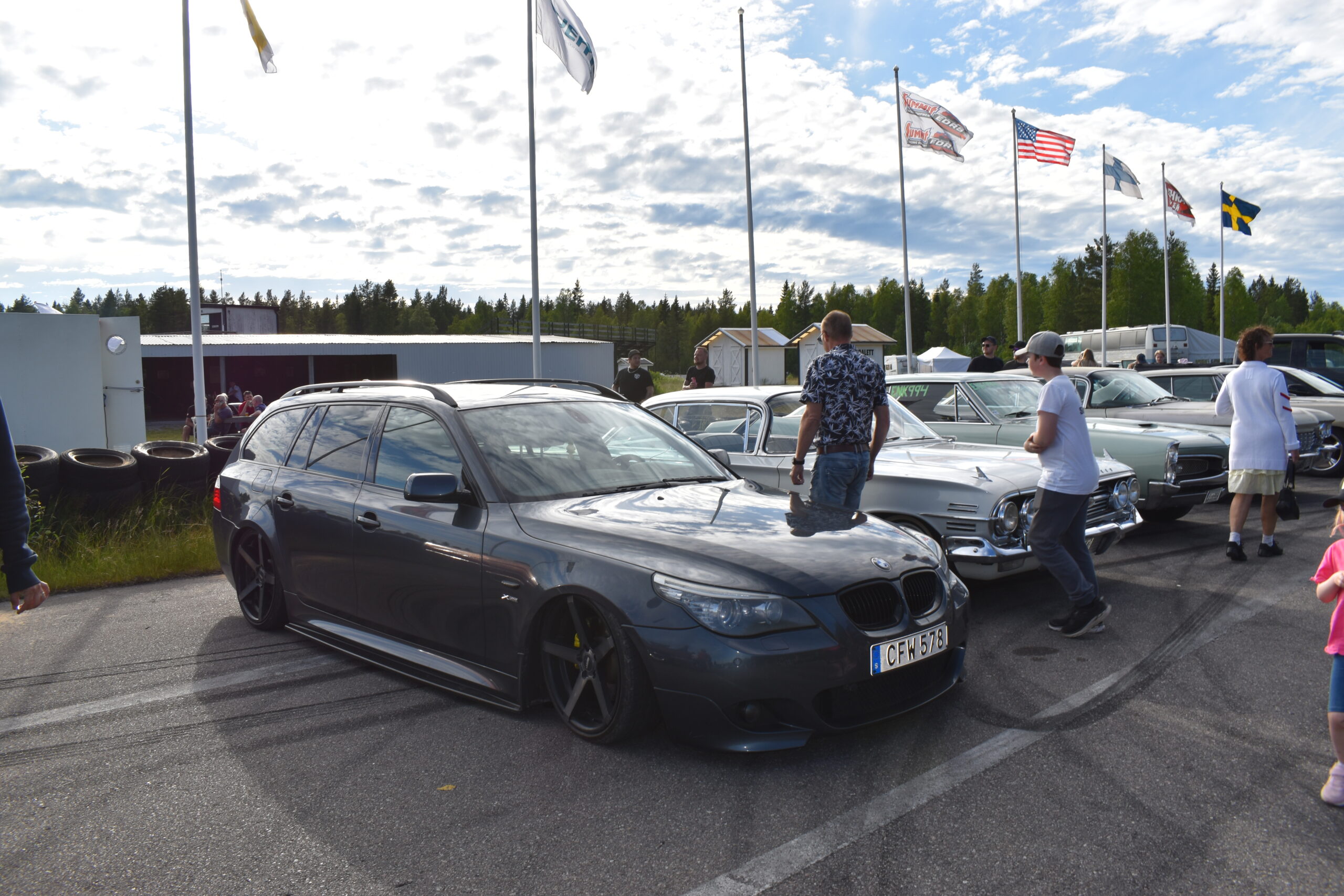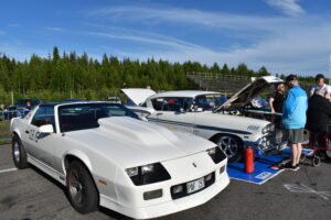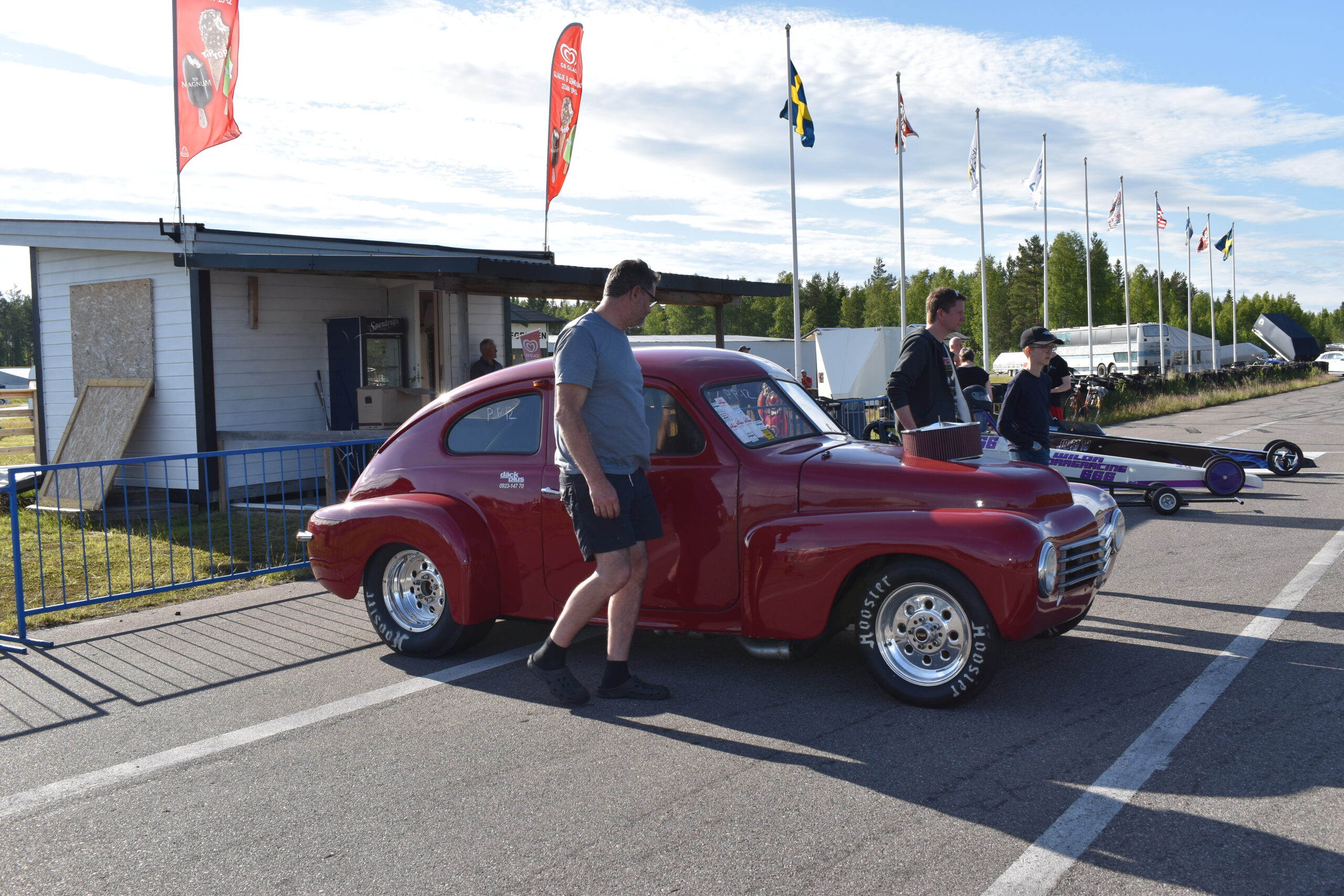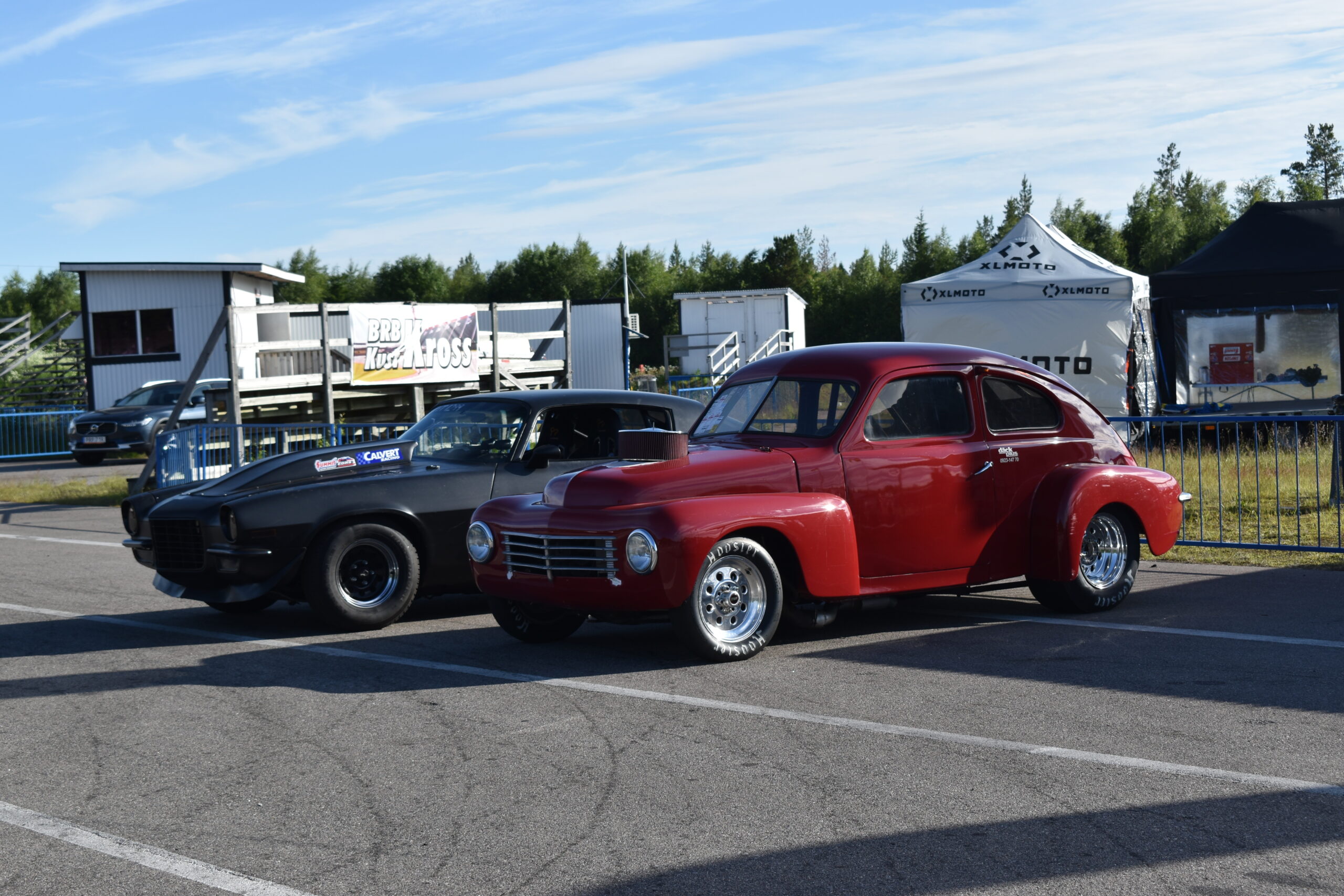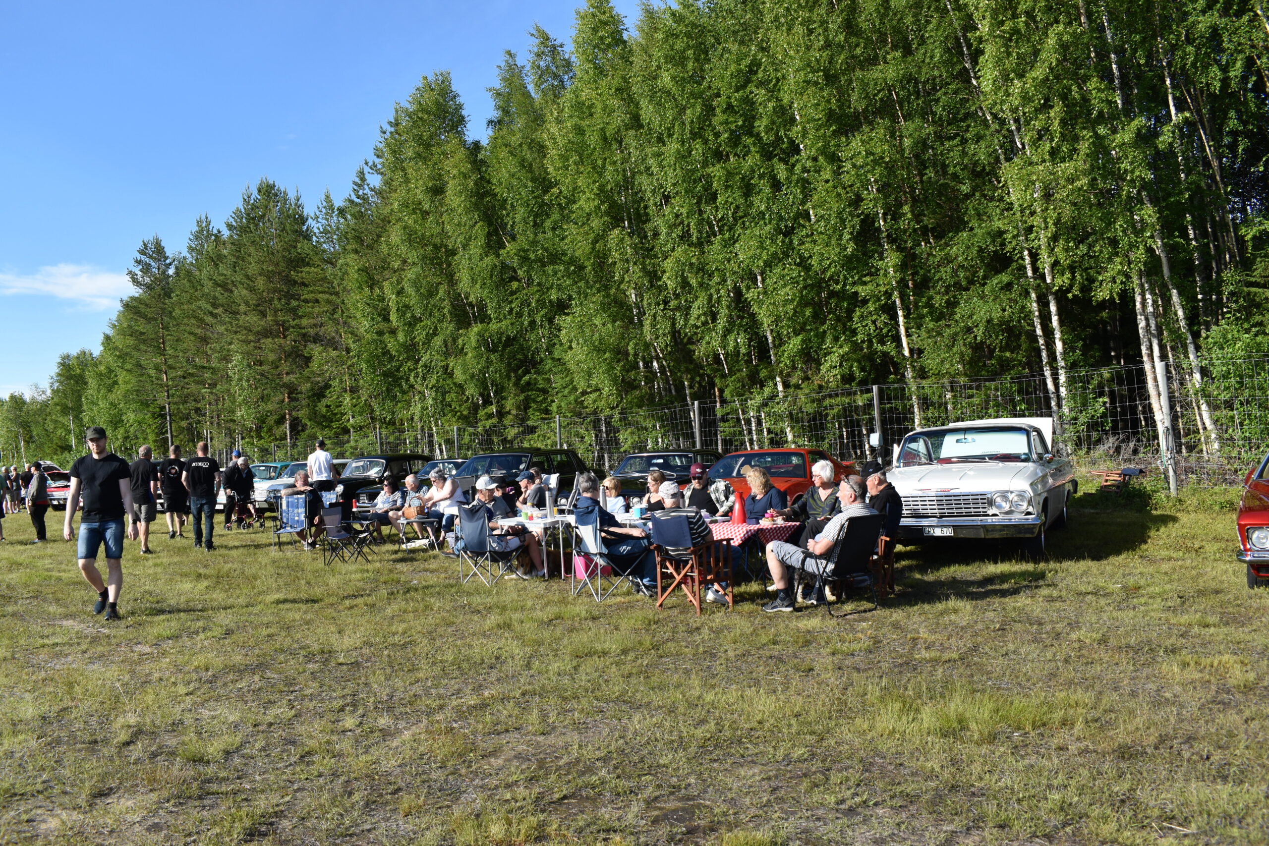 Denna kväll gick färden till Pite Dragway i Långnäs, där SHRA Luleå anordnade Bil & MC utställning i anslutning till Midnight Race Week. Ett 35-tal bilar + en veteranmotorcykel startade från garaget i Böle och körde i karavan till Pite Dragway. Där anslöt ytterligare ett tiotal av vårat gäng + ett stort antal bilar och motorcyklar från andra klubbar och sammanslutningar. Området blev packat med vackra fordon av alla möjliga former, färger och fasoner. Vi minglade runt, tittade på varandras fordon, pratade motor, fikade, åt hamburgare och njöt av det underbara sommarvädret – Det här är SommarPiteå när det är som bäst!